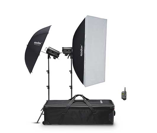 - 4 flashs Godox 600 W dont 2 avec synchronisation haute vitesse jusqu’à 1/8000s, déclenchement par émetteur Canon (me contacter pour d’autres marques).